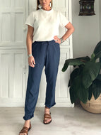 Reunion Pants in Dark Blue Cotton Chambray  - Regular price