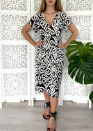 ON SALE - Kimono Midi dress in Black & White Ikat *No refunds on sale items* Sale Sale- Regular price