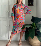 Greek Flutter Sleeve Dress LTD in Tropical Island Tile