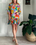 Greek Flutter Sleeve Dress LTD in Tropical Island Tile