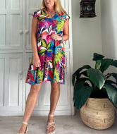 Greek Flutter Sleeve Dress in Greeny Mint Foliage