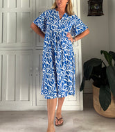 Greek Maxi Flutter Dress in Cobalt and White Spot