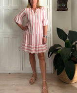 Original Greek Dress with Autumn Sleeve in a Soft Red & White Stripe