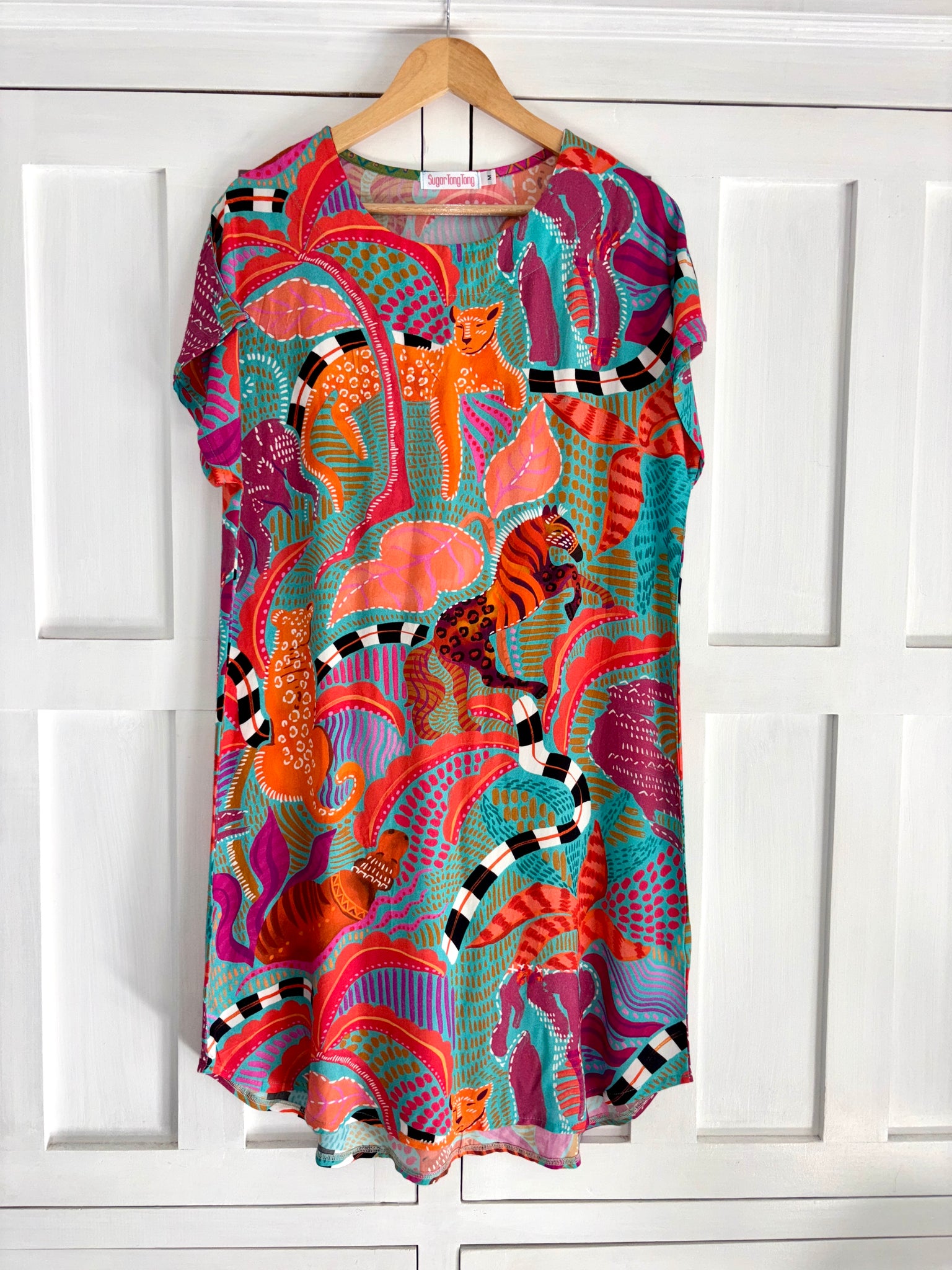 A fun & easy Shift Dress in a lively leopard print, perfect for everyday wear.