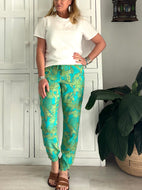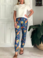 Wide Leg Linen Blend Pants in Light Blue Painted Fern