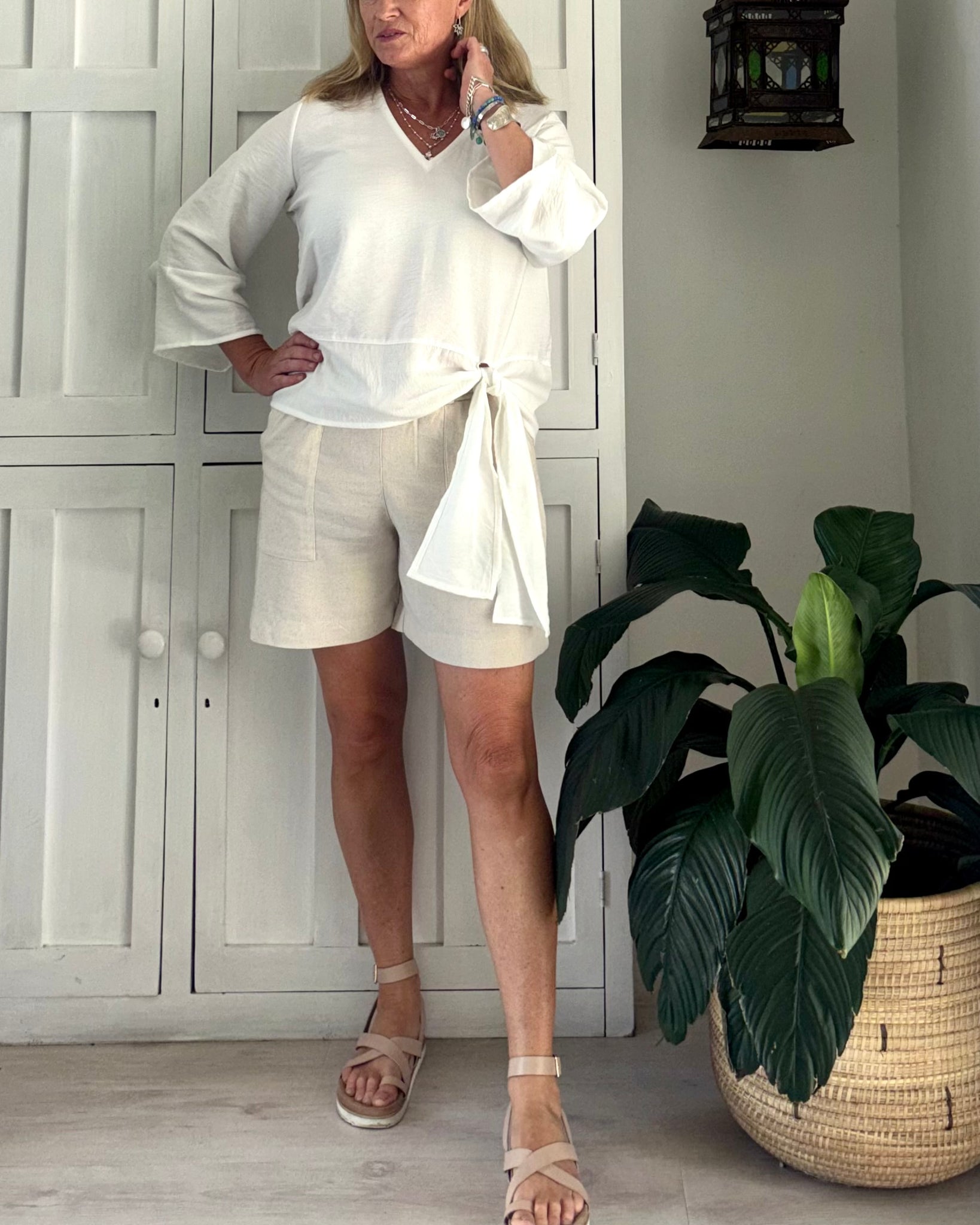 - A loose fitting ‘Kimono look’ sleeve